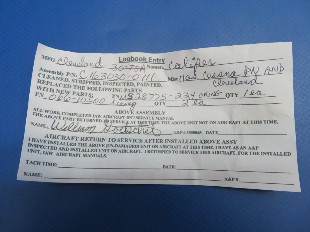Cessna 182 Cleveland Brake Caliper w/ New Linings P/N 3075A REBUILT (08251714)
