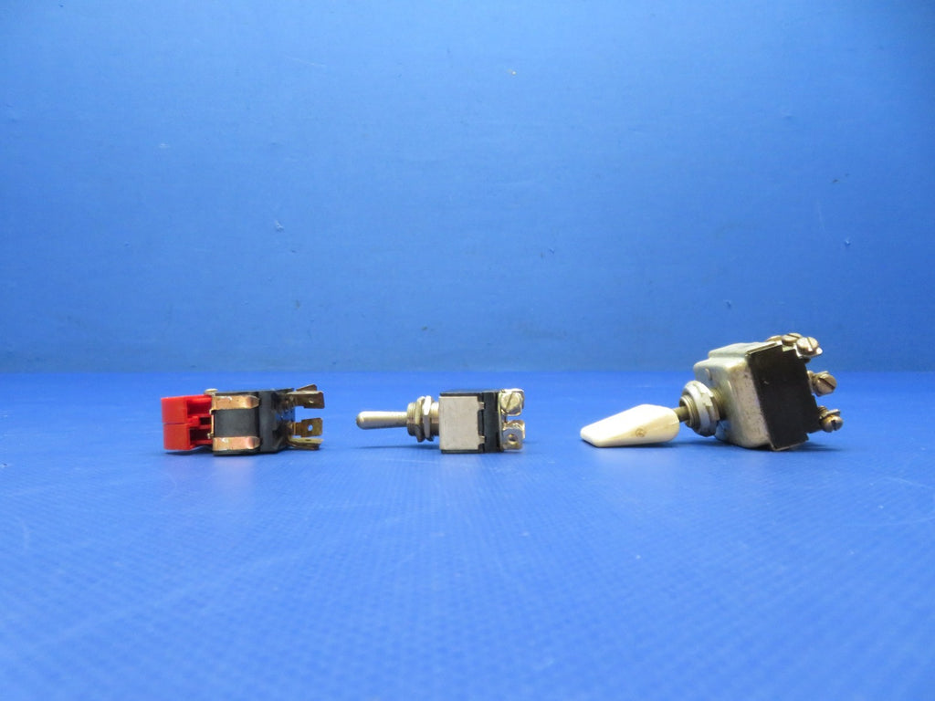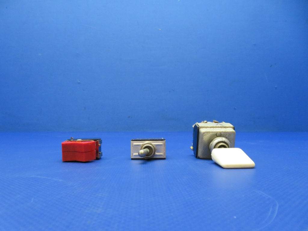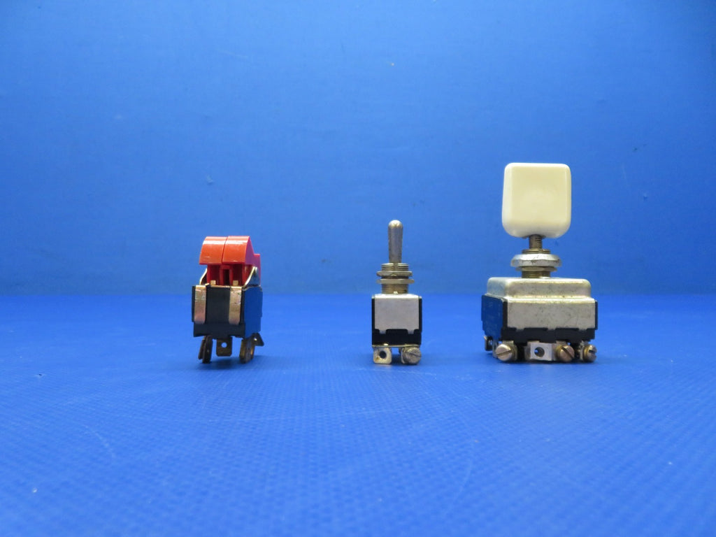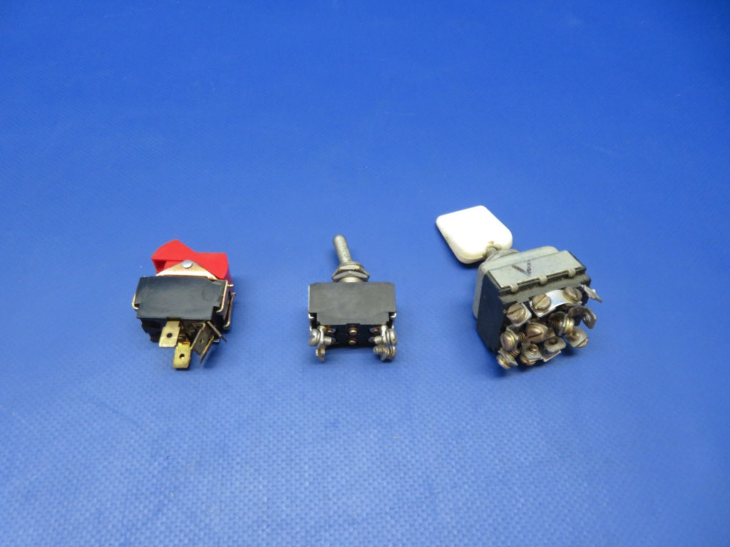 Cessna 182 Cutler Hammer / Carling Switches P/N S-1994-1-1, 8822K20, MS35059-22, MS25068-27, alt.-7672K5. LOT OF 3. Removed in good condition from a 1965 Cessna 182H N1935V, S/N 18256260. TTAF 3,842.2. Guaranteed to pass inspection or your money back.