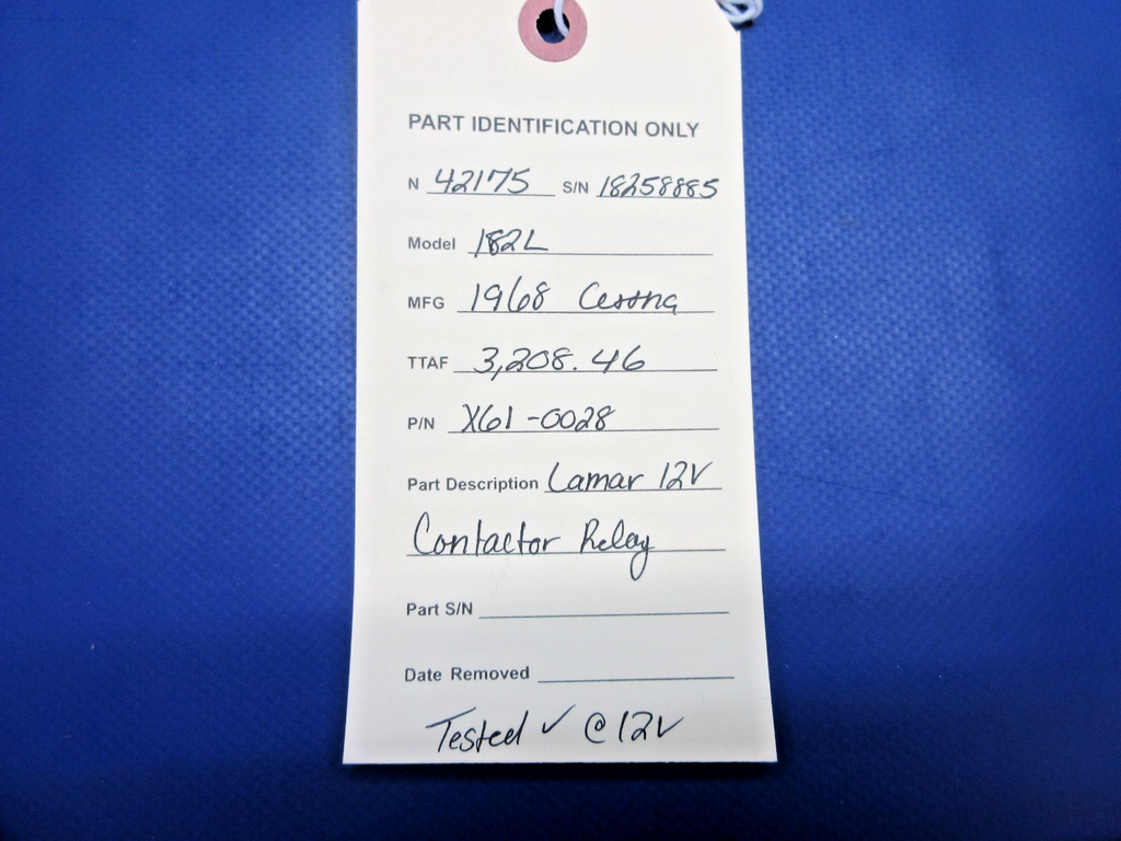 Cessna 182L Lamar 12V Contactor Relay P/N X61-0028 TESTED (1125-892)