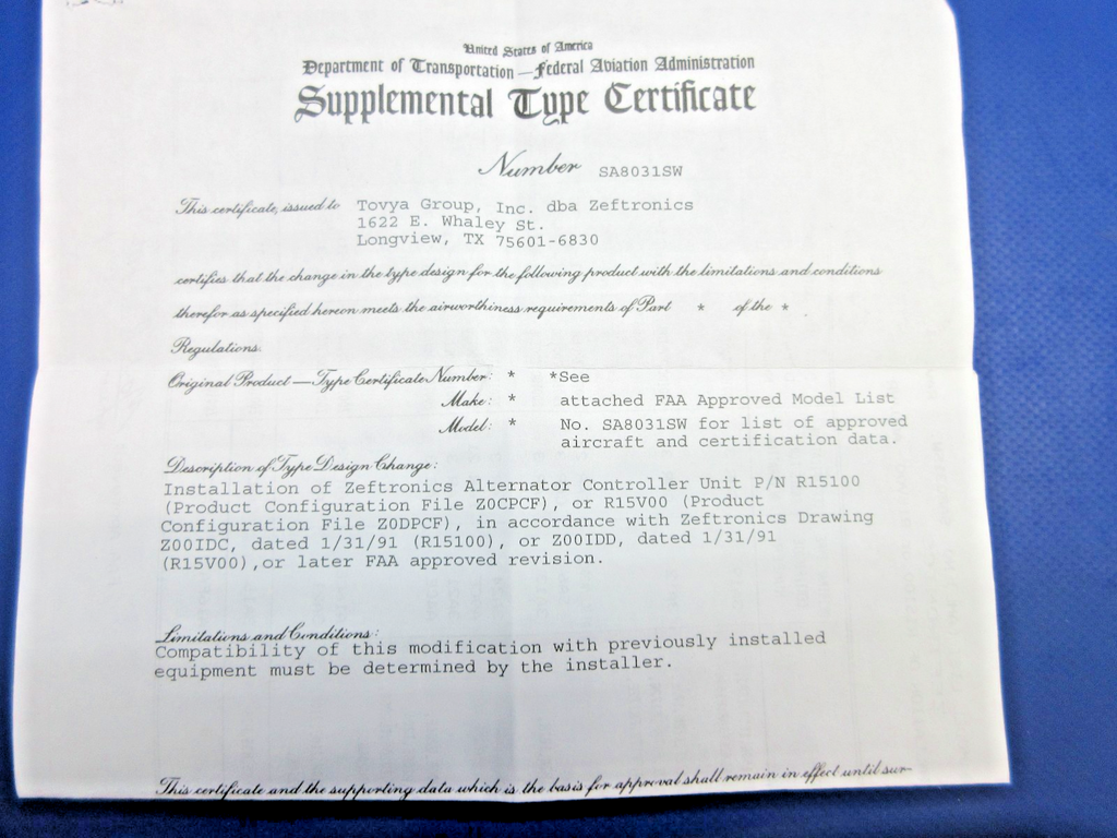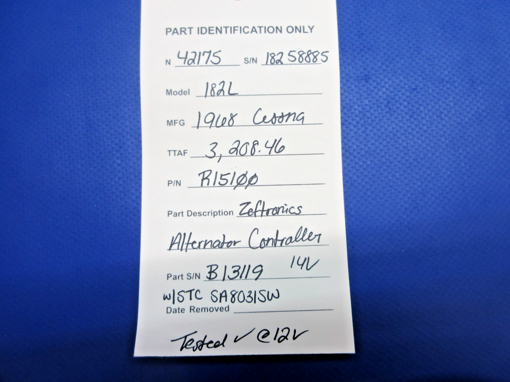 Cessna 182L Zeftronics Alternator Controller 14V P/N R15100 TESTED (1125-885)