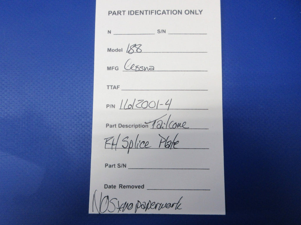Cessna 188 Tailcone Right Hand Splice Plate. P/N 1612001-4. NEW OLD STOCK. No paperwork. Guaranteed to pass inspection or your money back.