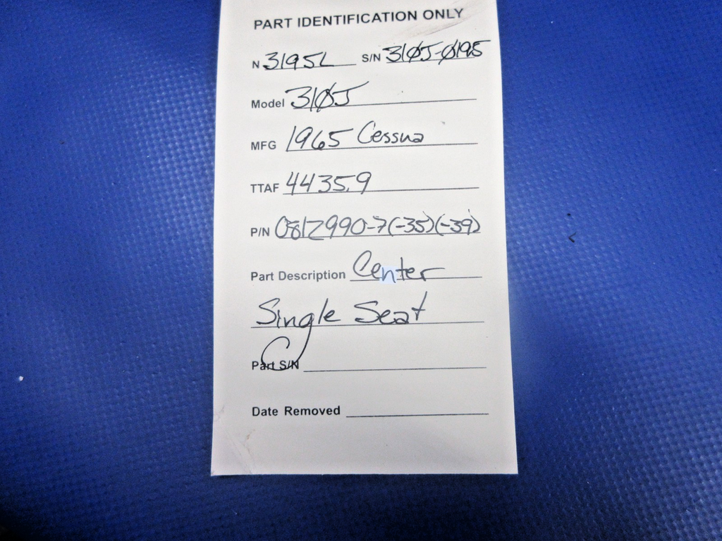 Cessna 310 / 310J Center Single Seat Tan Vinyl. P/N 0812990-7, 0812990-35, 0812990-39. Removed in good condition from a parted out 1965 Cessna 310J N3195L, S/N 310J0195. TTAF 4,435.9. Guaranteed to pass inspection or your money back.