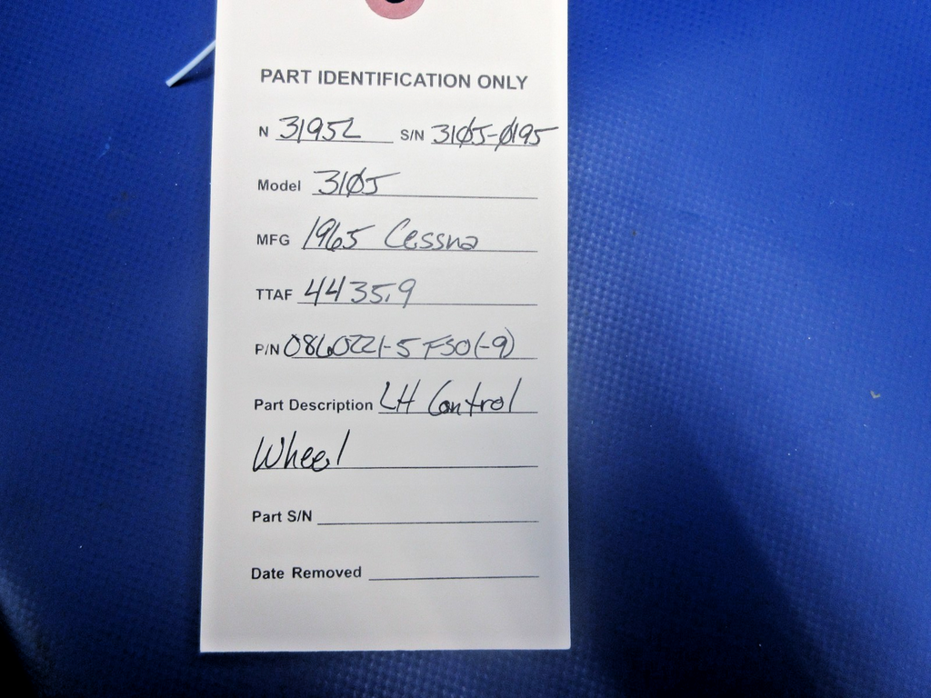 Cessna 310 / 310J Left Hand Control Wheel. P/N 0860221-5, For Spares Order 0860221-9. Removed in good condition from a parted out 1965 Cessna 310J N3195L, S/N 310J0195. TTAF 4,435.9. Guaranteed to pass inspection or your money back.