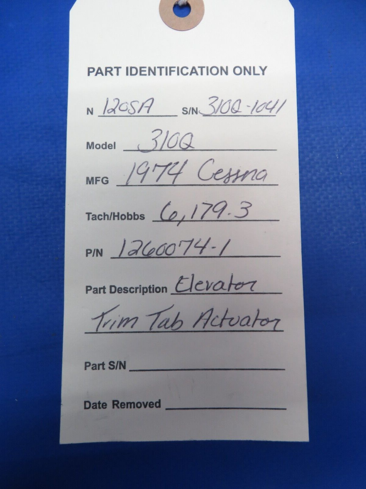 Cessna 310Q Elevator Trim Tab Actuator. P/N 1260074-1. Removed in good condition from a parted out 1974 Cessna 310Q N120SA, S/N 310Q-1041. TTAF 6,179.3. Guaranteed to pass inspection or your money back.