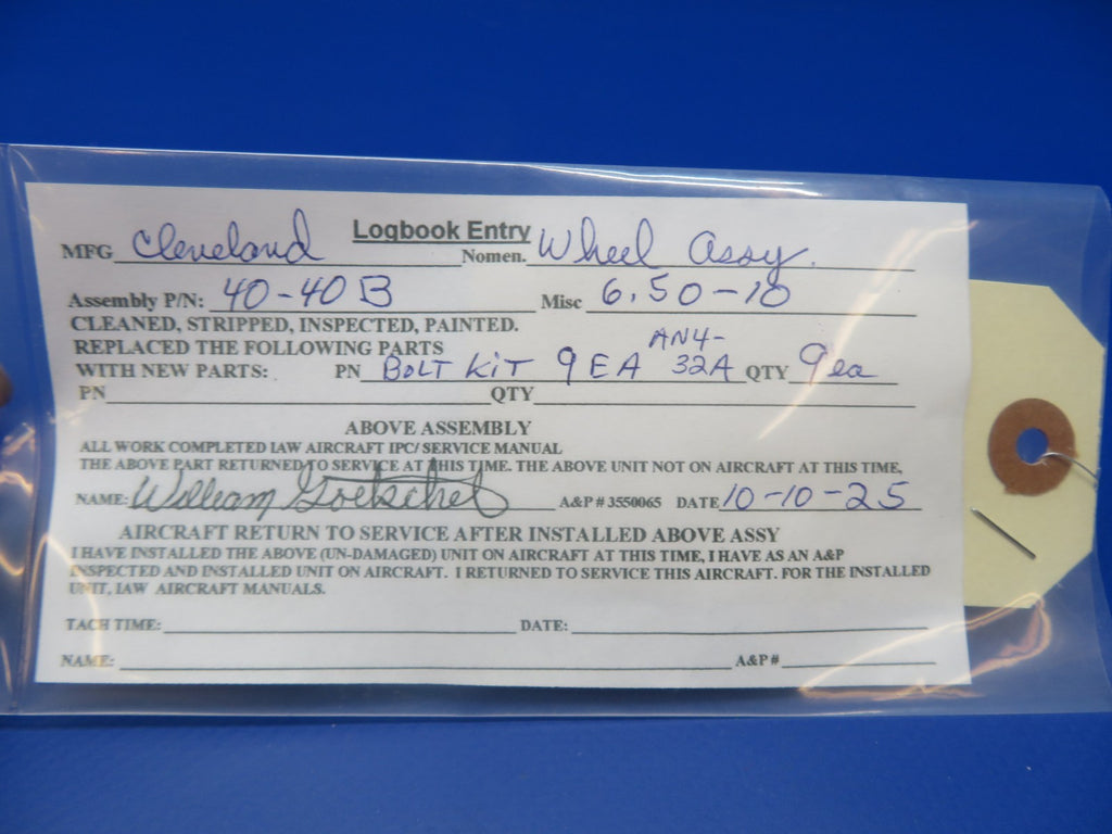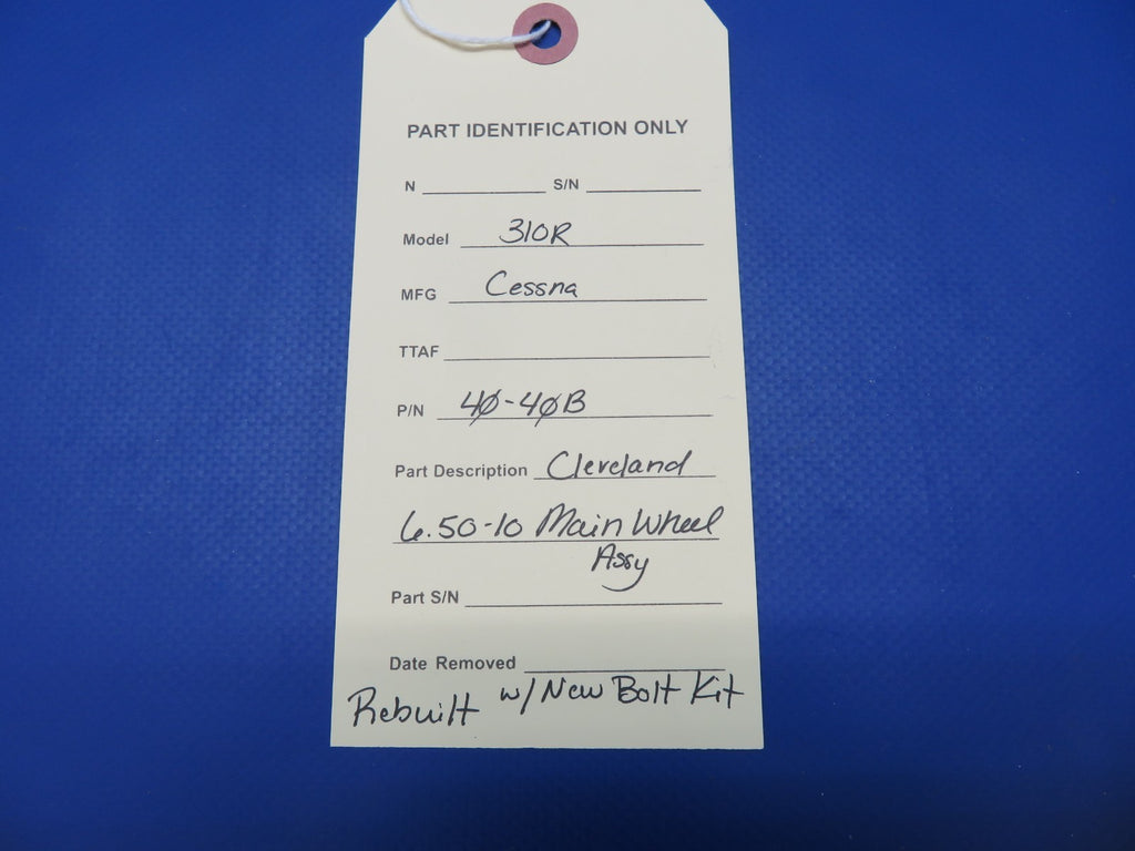 Cessna 310 / 310R Cleveland 6.50-10 Main Wheel Assembly with Spacer. P/N 40-40B. REBUILT with New Bolt Kit. Guaranteed to pass inspection or your money back.