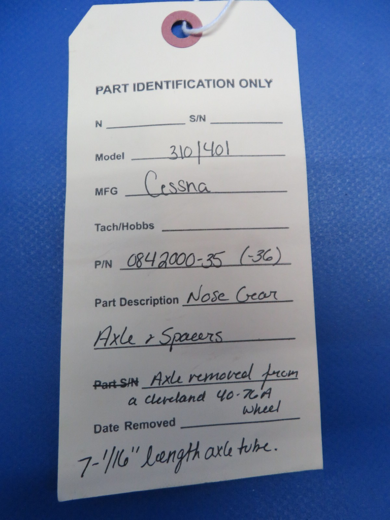 Cessna 310 / 401 Nose Gear Axle & Spacers 7-1/16" P/N 0842000-35 (0525-205)