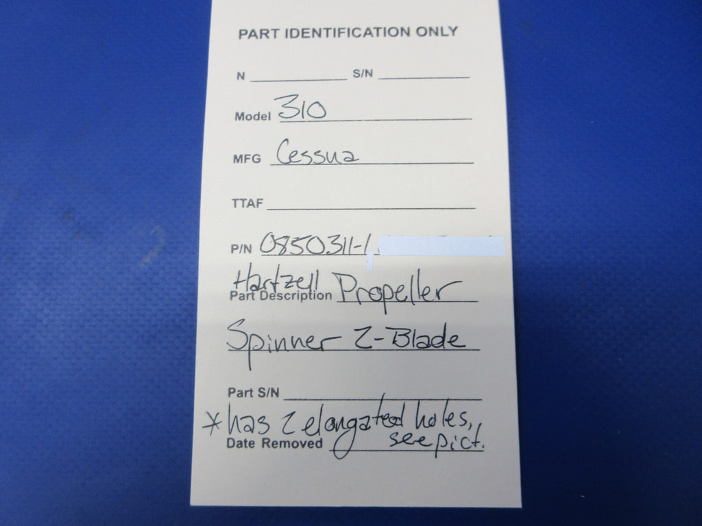 Cessna 310 Hartzell Propeller Spinner 2-Blade. P/N 0850311-1. Has 2 elongated holes, see pictures. Guaranteed to pass inspection or your money back.