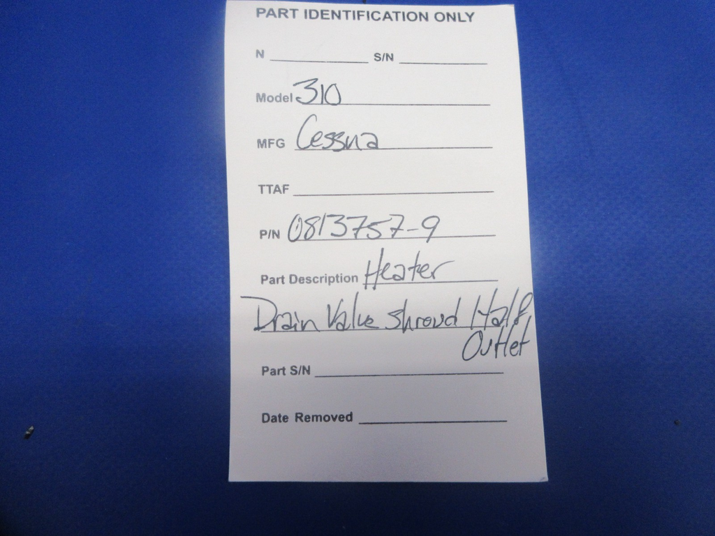 Cessna 310 Heater Drain Valve Shroud Half Outlet P/N 08137579 (0625968)