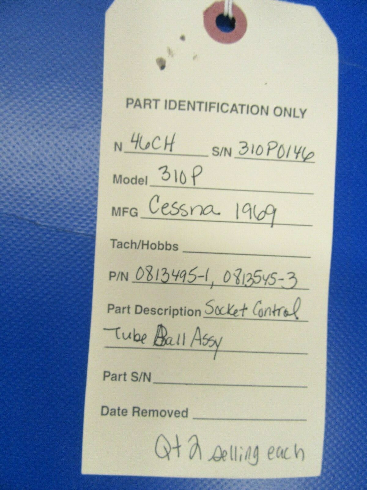 Cessna 310P Socket & Ball Control Tube Assy.  P/N 0813495-1 and 0813545-3.  Removed in working condition from a parted out 1969 Cessna 310P N46CH, S/N 310P0146.  Guaranteed to pass inspection or your money back.