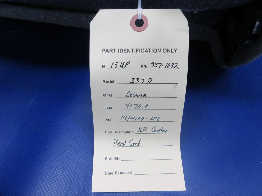 Cessna 337 / 337D Skymaster Right Hand Center Row Seat. P/N 1414100-222. Removed in good condition from a parted out 1969 Cessna 337D Skymaster N15UP, S/N 337-1032. TTAF 4170.0. Guaranteed to pass inspection or your money back.