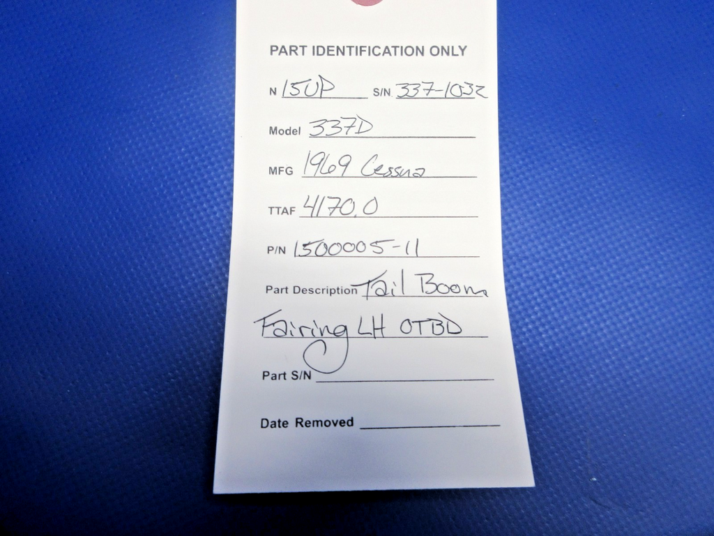 Cessna 337 / 337D Skymaster Tail Boom Fairing Left Hand Outboard. P/N 1500005-11. Removed in good condition from a parted out 1969 Cessna 337D Skymaster N15UP, S/N 337-1032. TTAF 4170.0. Guaranteed to pass inspection or your money back.