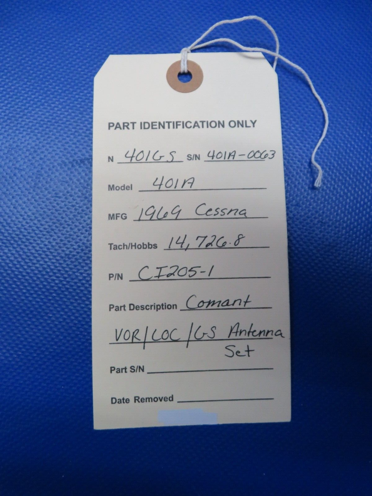 Cessna 401 / 401A Comant VOR/LOC/GS/ Antenna Set. P/N CI205-1. Removed in good condition from a parted out 1969 Cessna 401A N401GS, S/N 401A-0063. TTAF 14,726.8. Guaranteed to pass inspection or your money back.