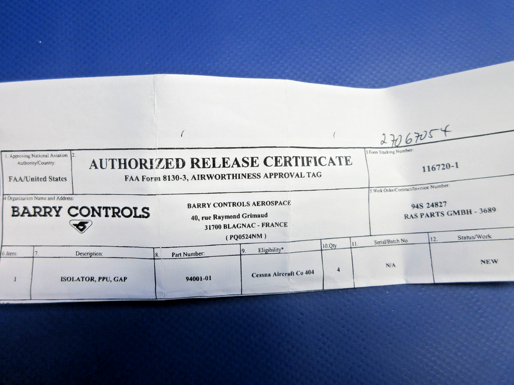 Cessna 404/411/421 Barry Engine Isolator Mount W/8130 94001-01 NOS (1125-762)