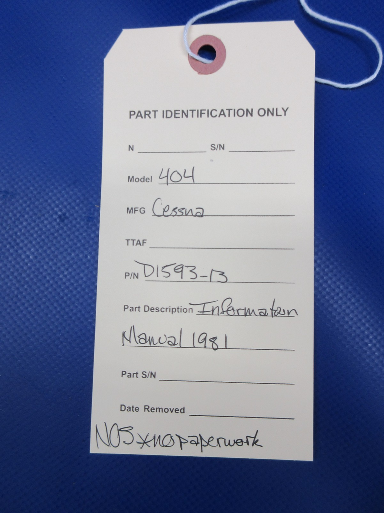 Cessna 404 Information Manual 1981. P/N D1593-13. NEW OLD STOCK. No paperwork. Guaranteed to pass inspection or your money back.