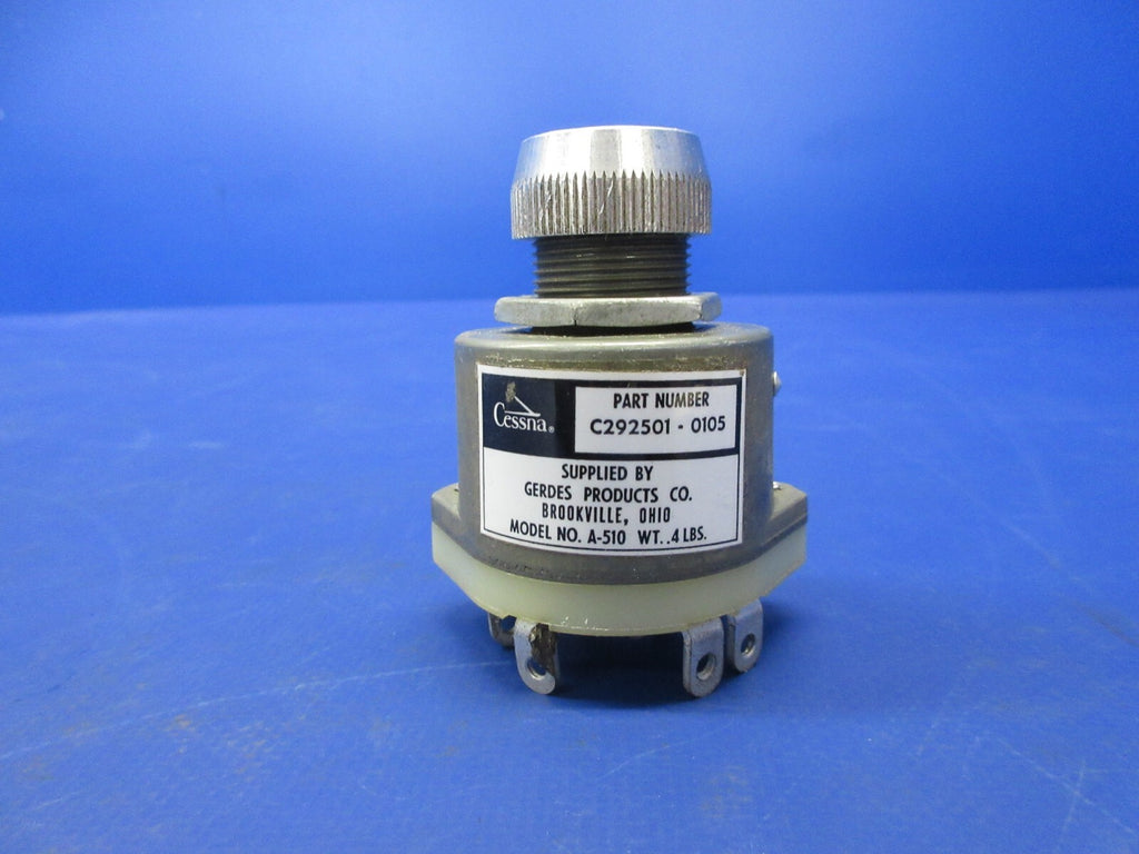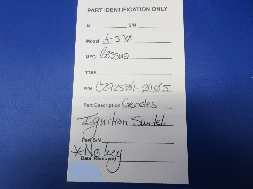Cessna A-510 Gerdes Ignition Switch. P/N C292501-0105. No Key. Guaranteed to pass inspection or your money back.