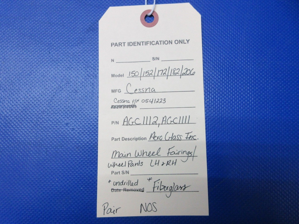 Cessna 150/152/172/182/206 Aero Glass Inc. Main Wheel Fairings / Wheel Pants Left Hand and Right Hand. P/N AGC1112, AGC1111. Cessna P/N 0541223. NEW OLD STOCK. Fiberglass and undrilled. Pair. Guaranteed to pass inspection or your money back.