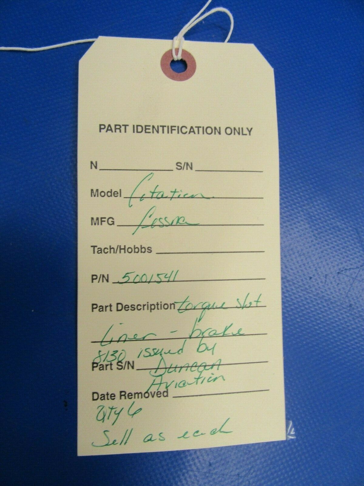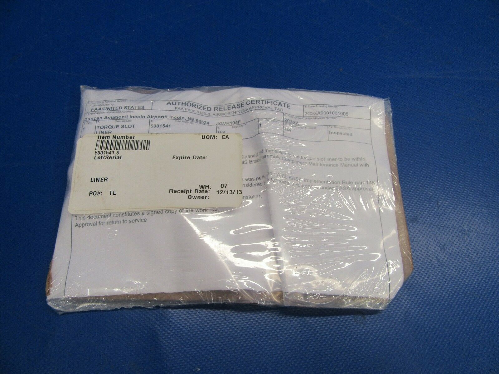 Cessna Citation Torque Slot Liner - Brake. P/N 5001541. 8130 issued by Duncan Aviation. Guaranteed to pass inspection or your money back.