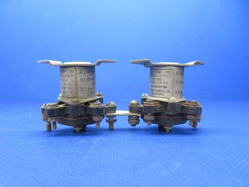 Cessna 310 / 310I Cutler-Hammer 50 AMP Relays 24-28v. P/N AN3350-2, 6041H169A. LOT OF 2. This item was recently tested at 28v and found to be in working condition. Removed in good condition from a parted out 1964 Cessna 310I N8054M, S/N 310I0054. Est. TTAF 5,800.0. Guaranteed to pass inspection or your money back.