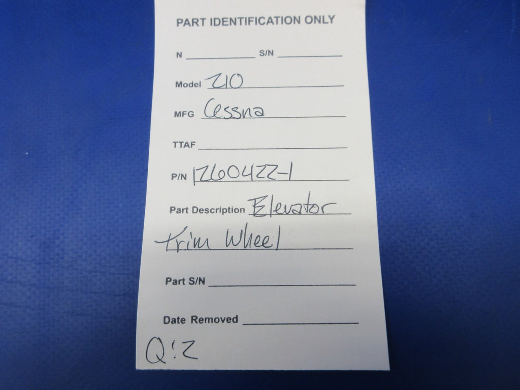 Cessna 210 Elevator Trim Wheel. P/N 1260422-1. Due to multiple quantities, buyer may not receive exact item pictured. Guaranteed to pass inspection or your money back.