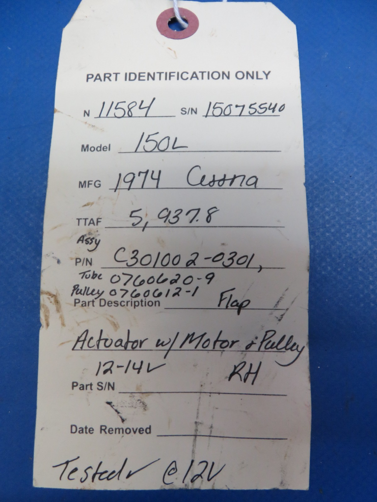 Cessna Flap Actuator w/ Motor & Pulley RH 12-14v C301002-0301 TETSED (0825-184)