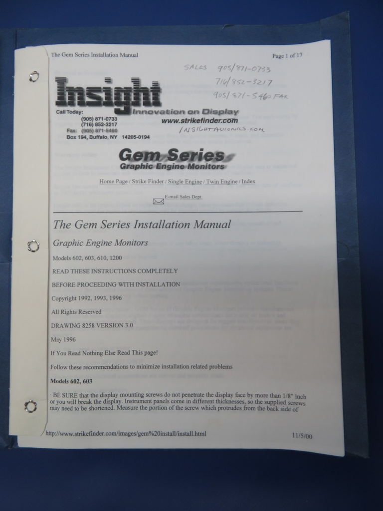 Cessna Insight Graphic Engine Monitor & Guide 11-30v GEM-602 WARRANTY (1025-144)