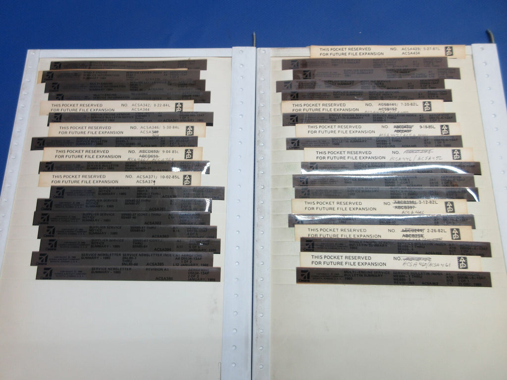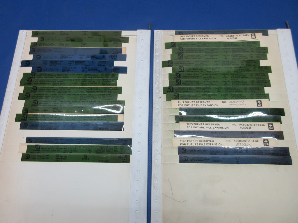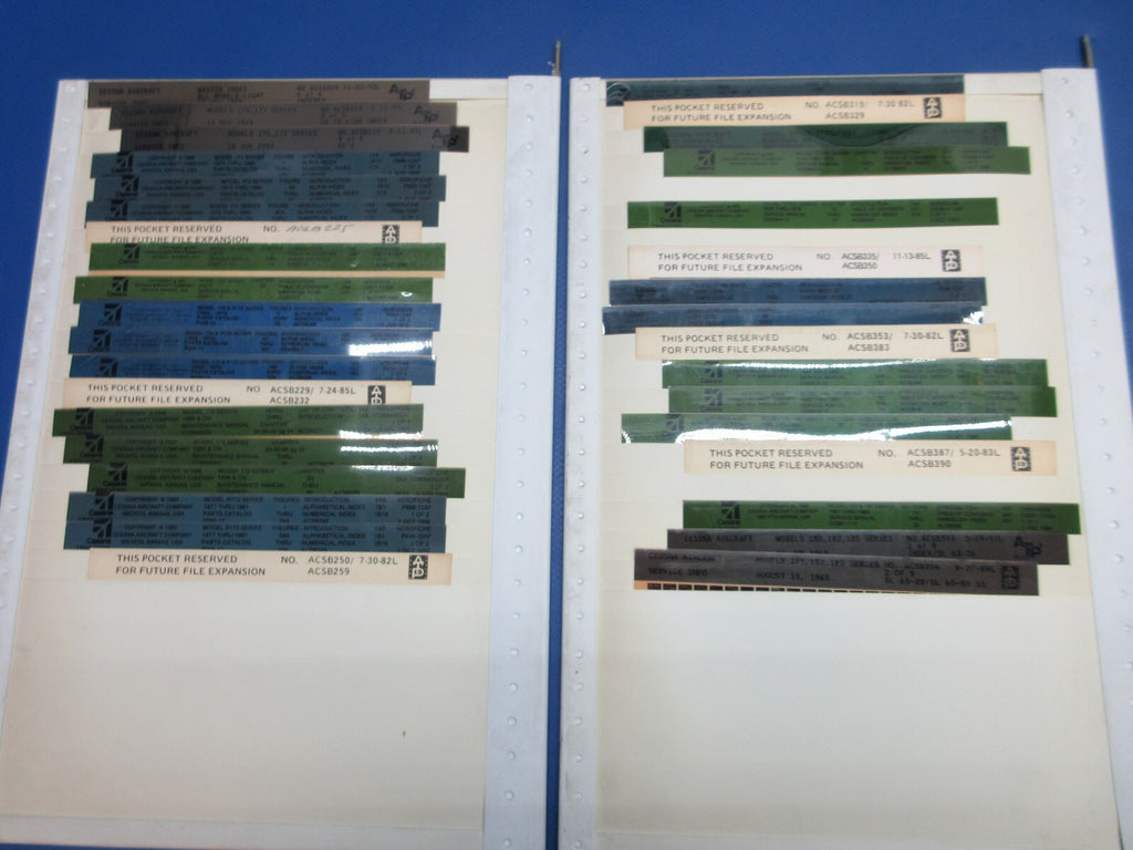 Cessna Various Models Mircofiche Service Info / Manuals, Parts Catalogs, Maintenance Manuals, Service Bulletins / Letters. Guaranteed to pass inspection or your money back.