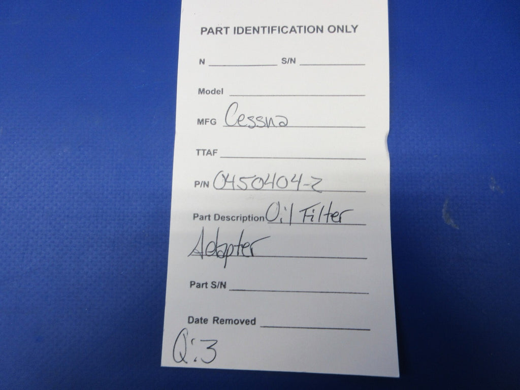 Cessna Oil Filter Adapter. P/N 0450404-2. Due to multiple quantities, buyer may not receive exact item pictured. Guaranteed to pass inspection or your money back.