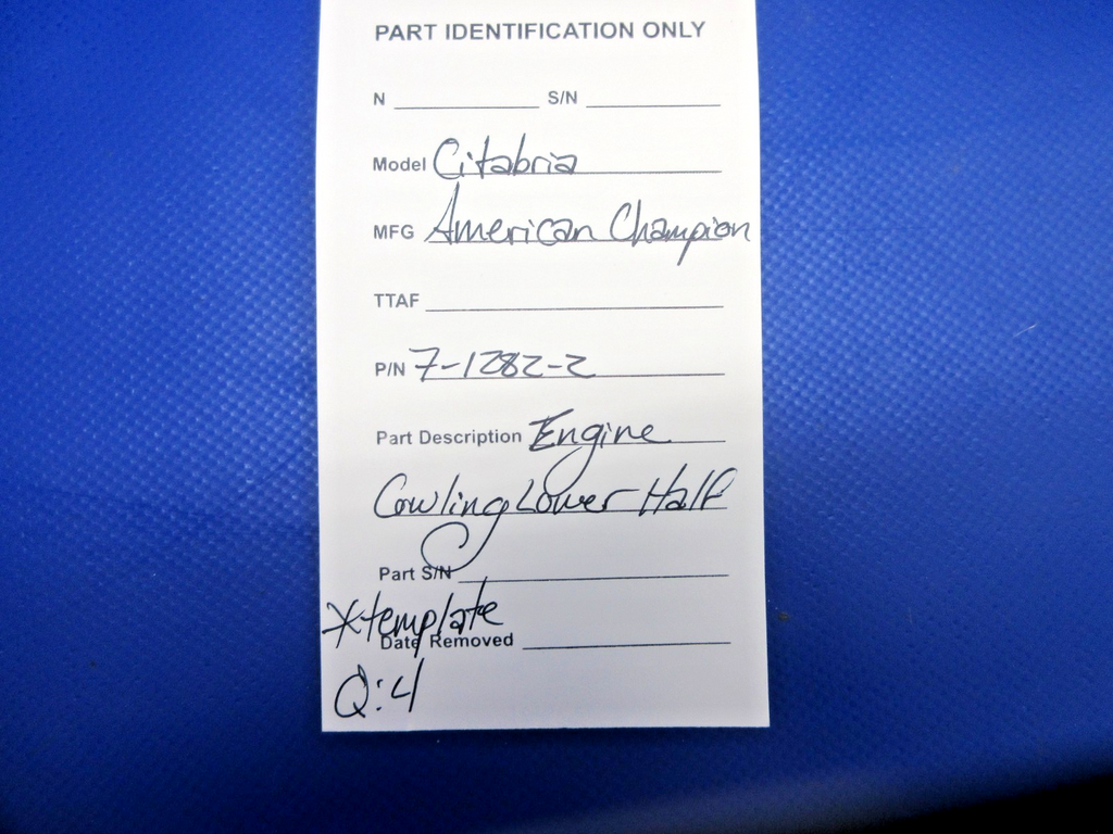 Citabria American Champion Engine Cowling Lower Half. Fiberglass Reproduction of P/N 7-1282-2. Due to multiple quantities, the buyer may not receive the exact item pictured. Guaranteed to pass inspection or your money back.