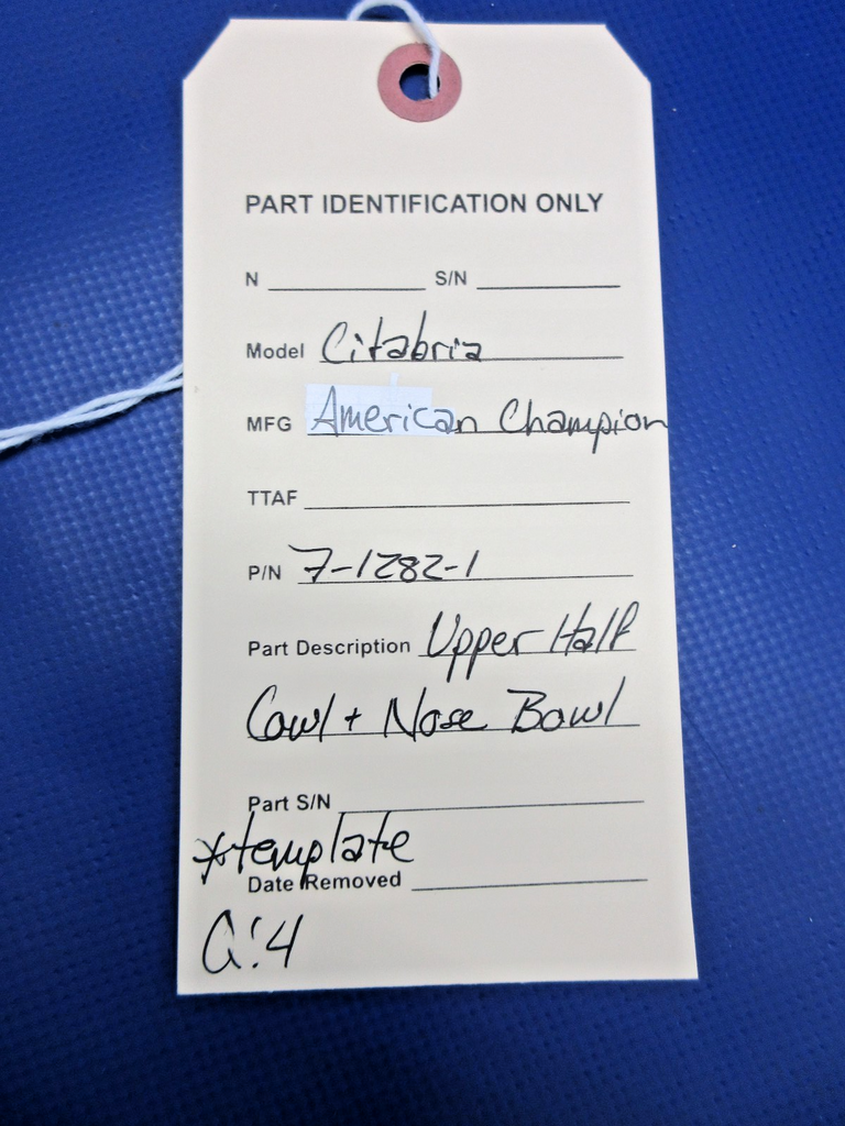Citabria American Champion Upper Half Cowl & Nose Bowl. Fiberglass Reproduction of P/N 7-1282-1. Due to multiple quantities, the buyer may not receive the exact item pictured. Guaranteed to pass inspection or your money back.