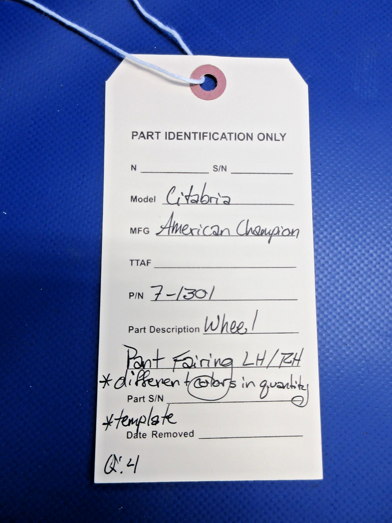 Citabria American Champion Wheel Pant Fairing Left Hand / Right Hand. Fiberglass Reproduction of P/N 7-1301. Due to multiple quantities, the buyer may not receive the exact item pictured. Guaranteed to pass inspection or your money back.