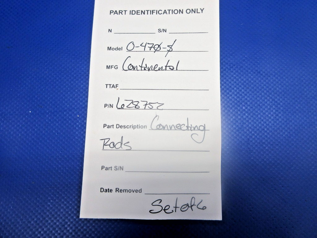 Continental O-470-S Connecting Rods. P/N 628752. SET OF 6. Guaranteed to pass inspection or your money back.