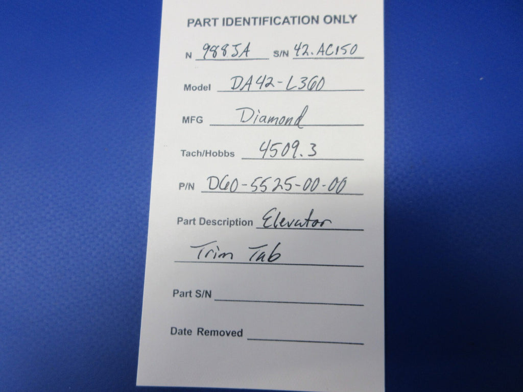Diamond DA42-L360 Elevator Trim Tab. P/N D60-5525-00-00. Removed in good condition from a parted out Diamond DA42-L360 N988JA, S/N 42.AC150. TTAF 4509.3. Guaranteed to pass inspection or your money back.