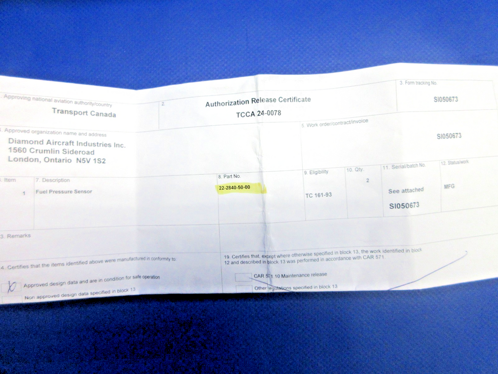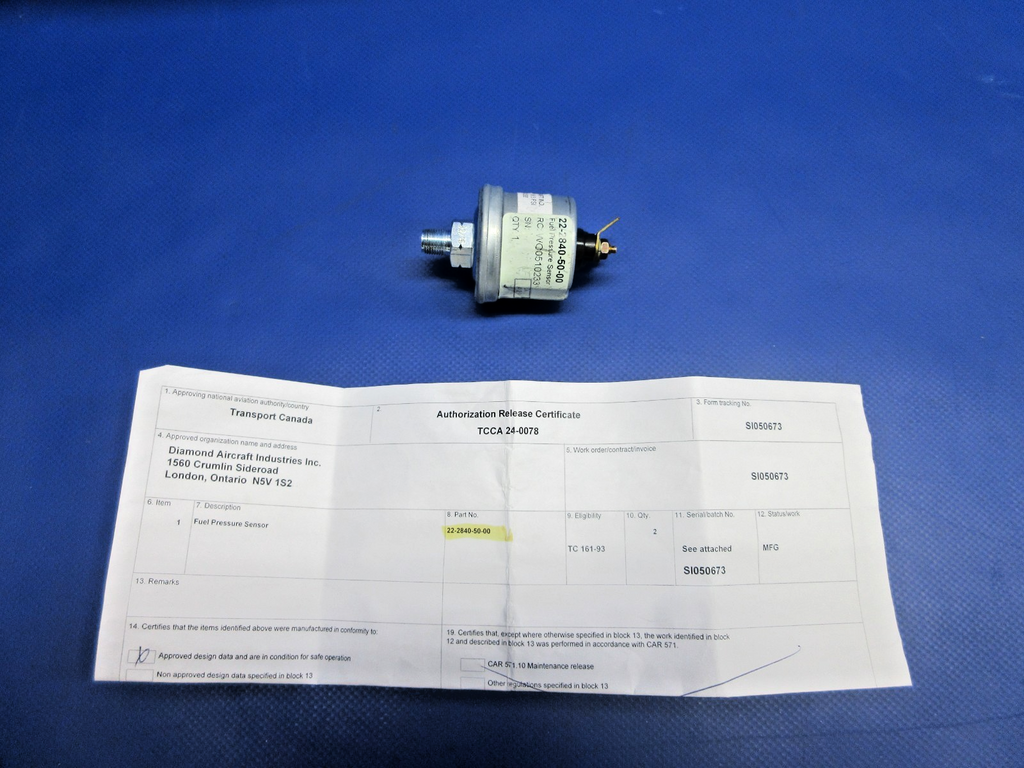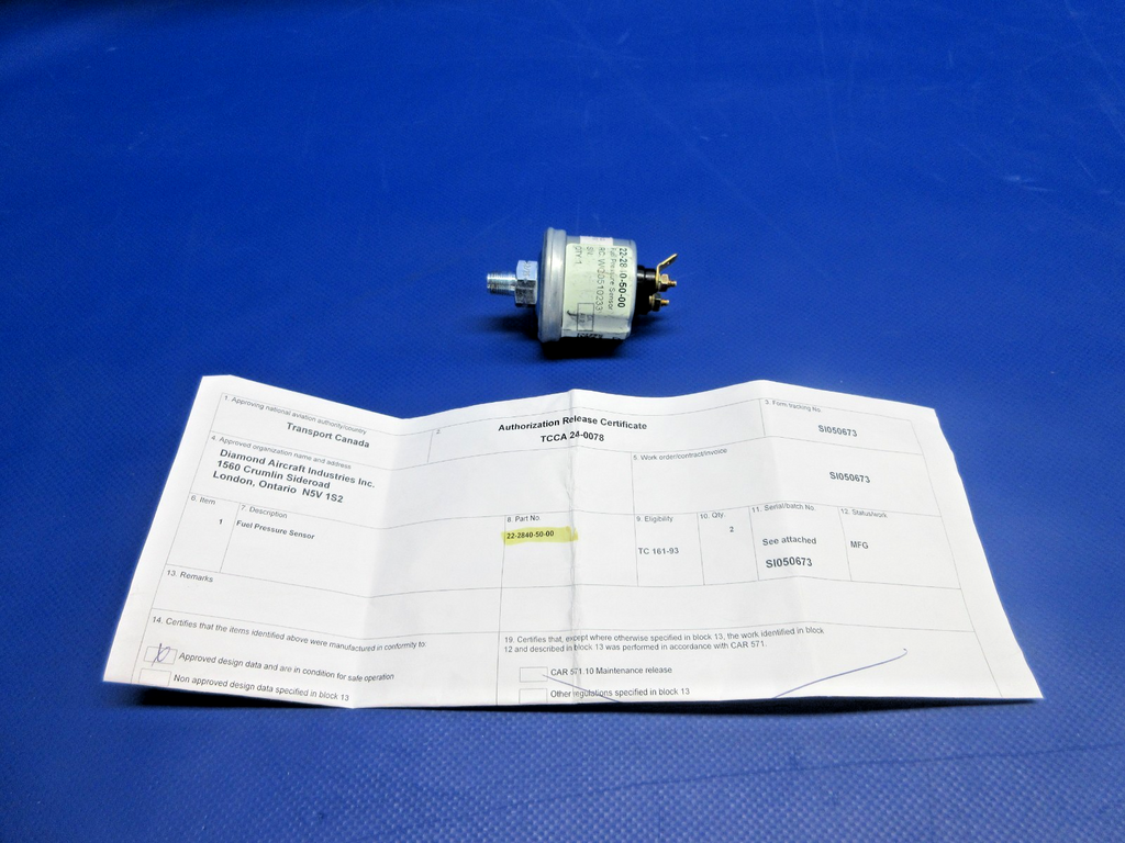 Diamond Fuel Pressure Sensor With TCCA 24-0078. P/N 22-2840-50-00, 360-0435SB. Guaranteed to pass inspection or your money back.