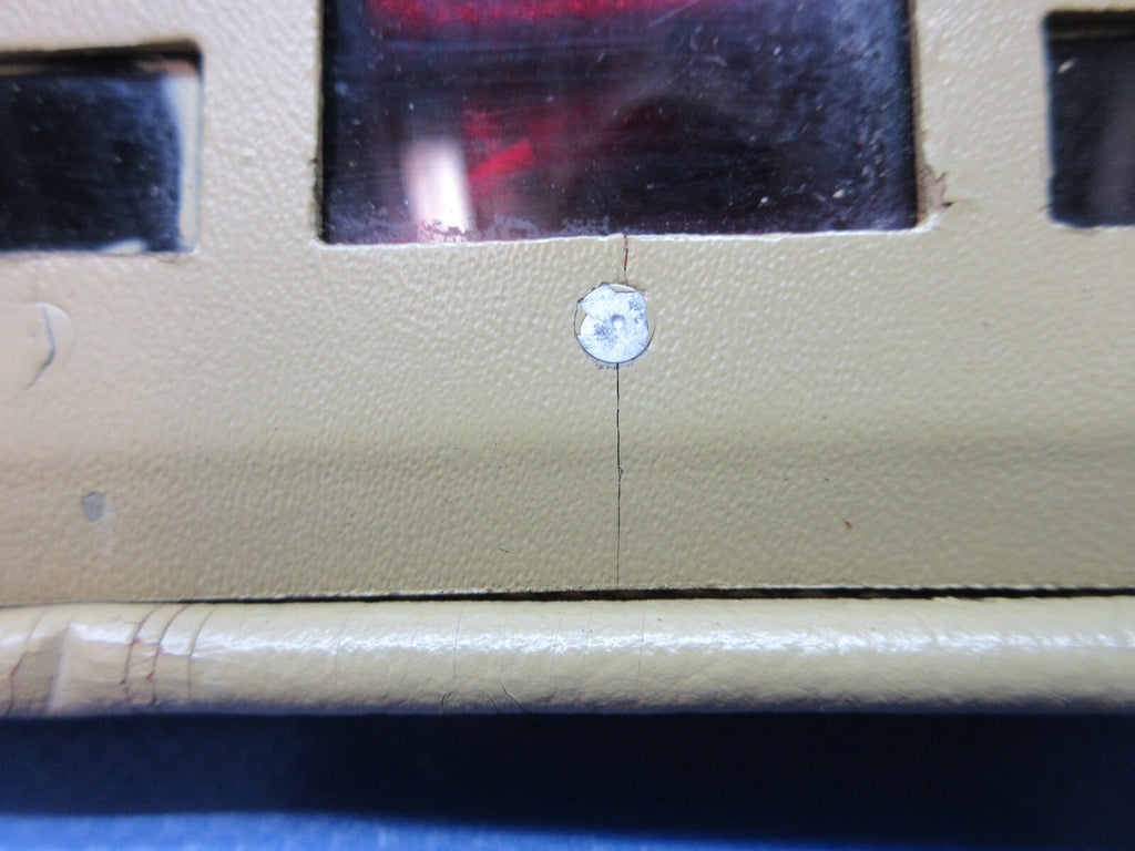 Cessna 310 Dome Light Cover and Rheostats 28 volts. P/N H-75-F2-351, 0812350-67. No switch. Plastic has some cracks, see pictures. This item was recently tested at 28 volts and found to be in working condition. Removed in good condition from a parted out 1957 Cessna 310 N5271A, S/N 35471. TTAF 2,830.00. Guaranteed to pass inspection or your money back.