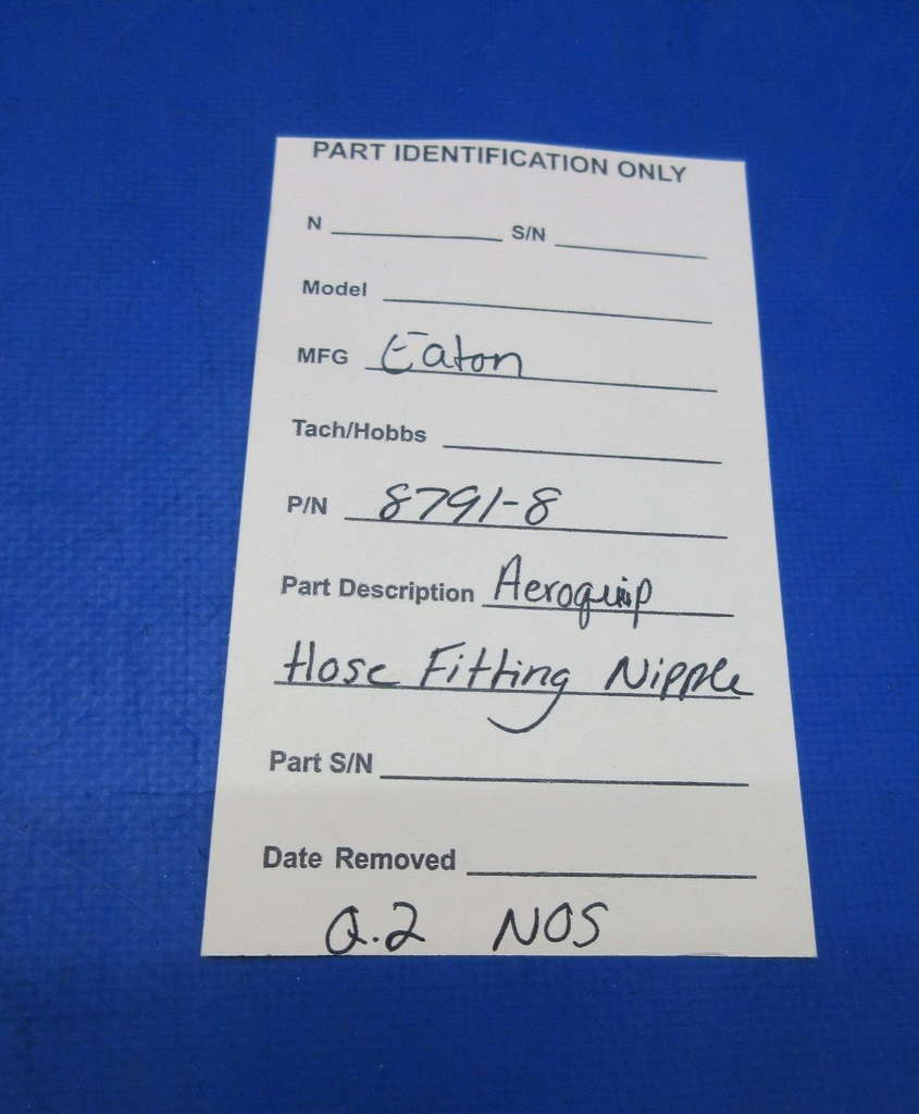 Eaton Aeroquip Hose Fitting Nipple. NEW OLD STOCK. P/N 8791-8. Due to multiple quantities buyer may not receive exact item pictured. Guaranteed to pass inspection or your money back.