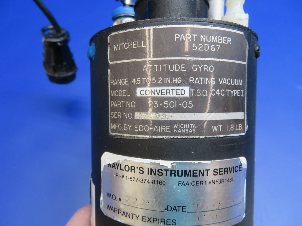 Edo-Aire Mitchell Attitude Gyro P/N 52D67, 5000-E WARRANTY (0825-1745)