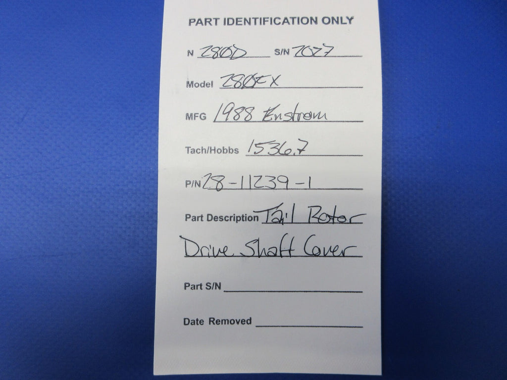 Enstrom 280FX Tail Rotor Drive Shaft Cover. P/N 28-11239-1. Removed in good condition from a 1988 Enstrom 280FX Helicopter N280D, S/N 2027. TTAF 1,536.7. Guaranteed to pass inspection or your money back.
