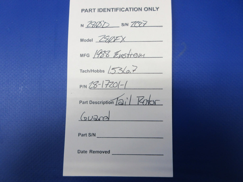 Enstrom 280FX Tail Rotor Guard. P/N 28-17201-1. Removed in good condition from a 1988 Enstrom 280FX Helicopter N280D, S/N 2027. TTAF 1,536.7. Guaranteed to pass inspection or your money back.