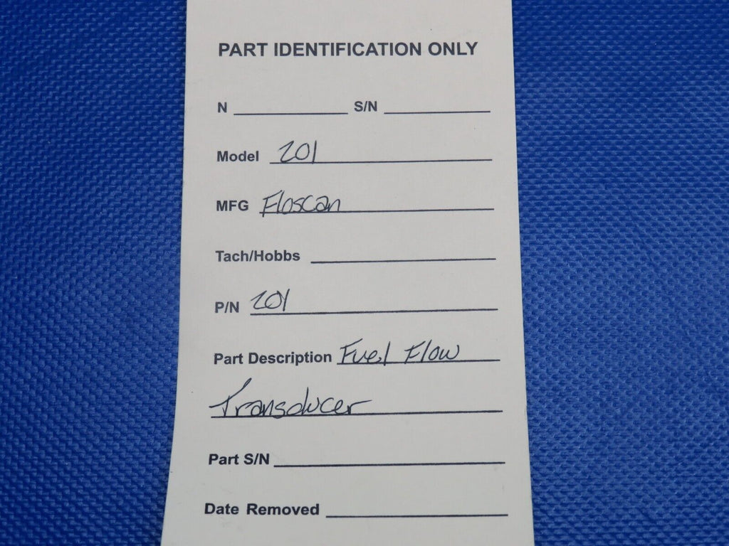 Floscan Fuel Flow Transducer. P/N 201. We are unable to test this item, however we are selling this unit with a 30 day warranty. Guaranteed to pass inspection or your money back.