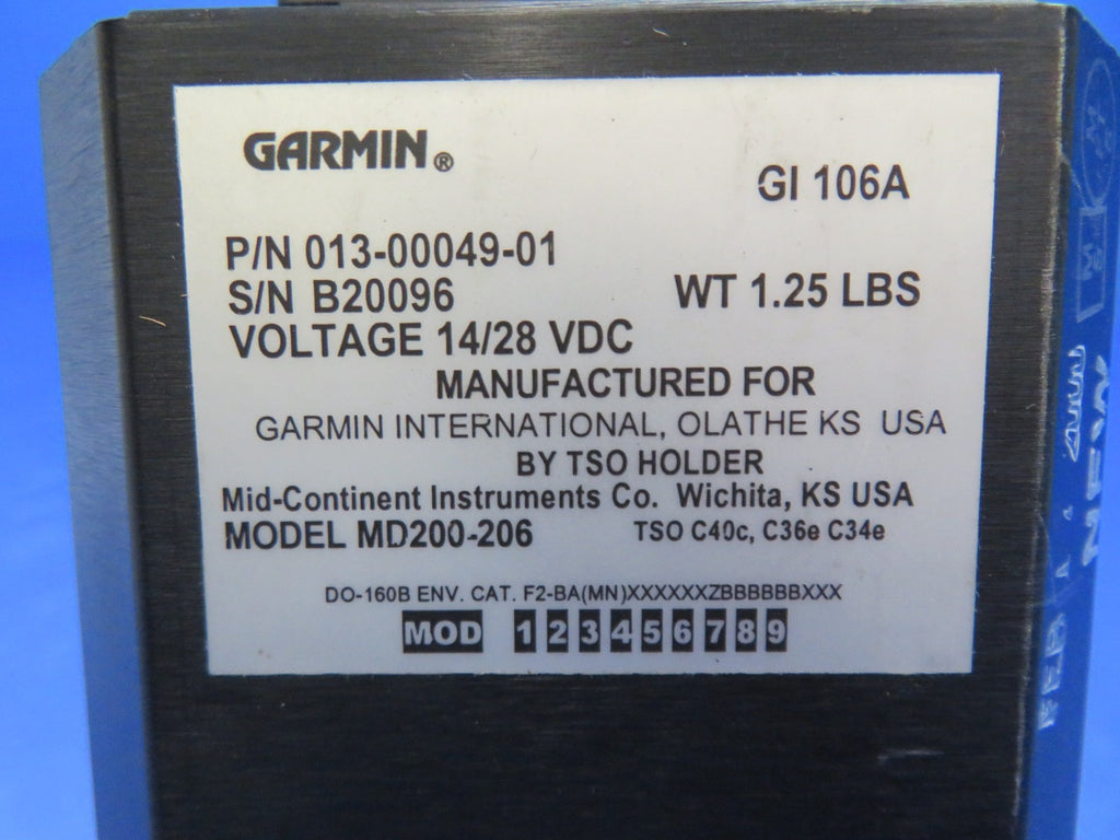 Garmin GI 106A Mid-Cont. MD200-206 Ind. 14/28v 013-00049-01 WARRANTY (1025-165)