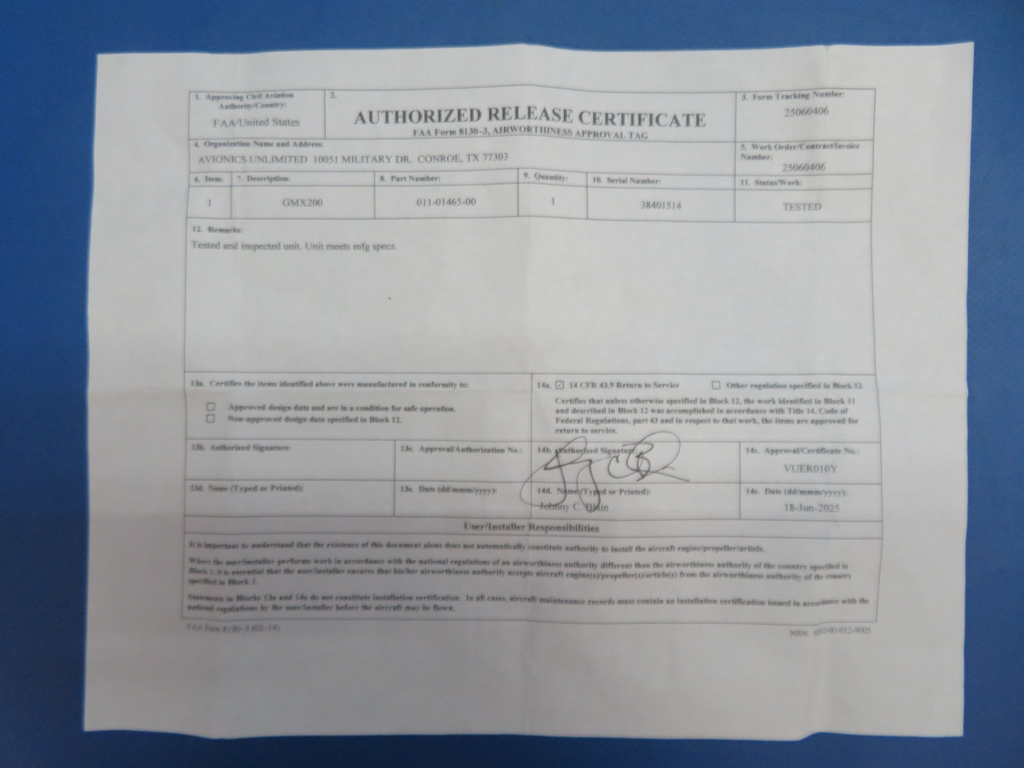 Garmin GMX200 Multi Flight Display 1428v 0110146500 TESTED w 8130 (0625218)