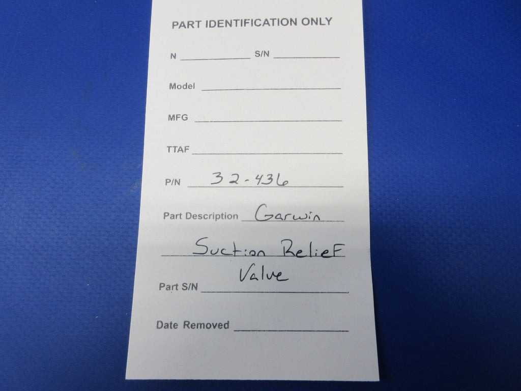 Garwin Suction Relief Valve. P/N 32-436. Guaranteed to pass inspection or your money back.