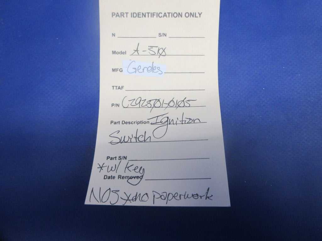 Gerdes A510 Ignition Switch With Key P/N C2925010105 NOS (0625810)
