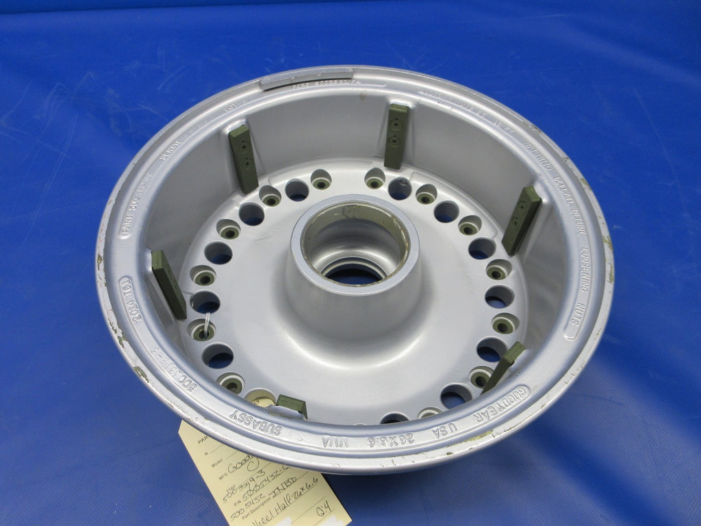 Goodyear Inboard Wheel Half 26x6.6. P/N 5005432-C, 5005432, 5003319-C. Appears new or overhauled but no paperwork. Due to multiple quantities buyer may not receive exact item pictured. Guaranteed to pass inspection or your money back.