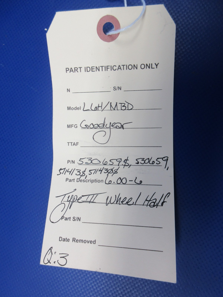 Goodyear L6H/MBD 6.00-6 Type III Wheel Half. P/N 530659S, 530569, 511413S, 511430S. Due to multiple quantities buyer may not receive exact item pictured. Guaranteed to pass inspection or your money back.