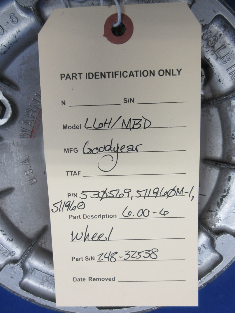 Goodyear L6H/MBD 6.00-6 Wheel. P/N 530569, 511960M1, 511960. S/N 248-32538. Guaranteed to pass inspection or your money back.