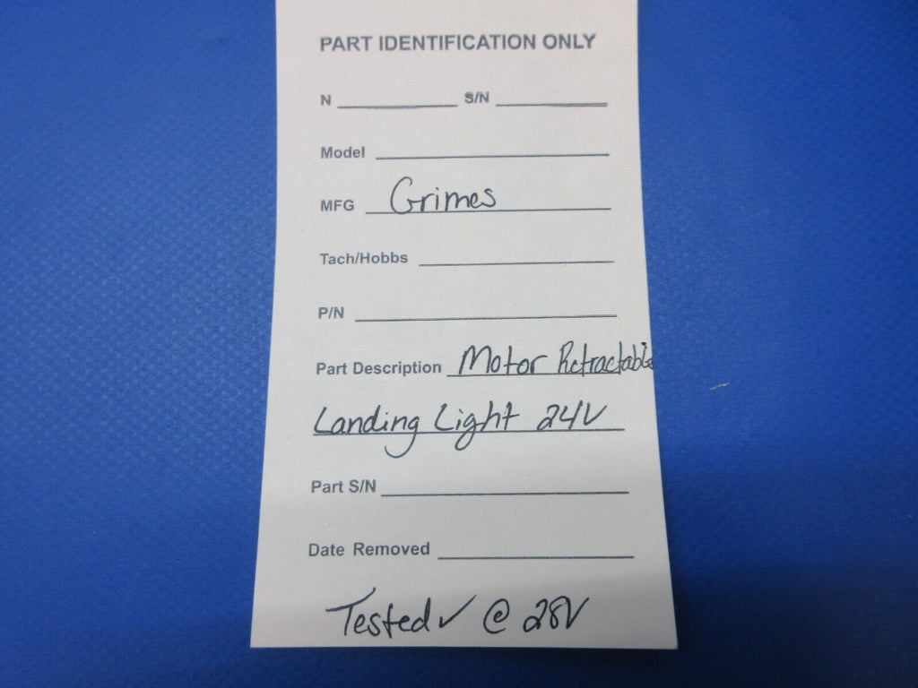 Grimes Motor Retractable Landing Light 24 volts. This item was recently tested at 28 volts and found to be in working condition. Guaranteed to pass inspection or your money back.