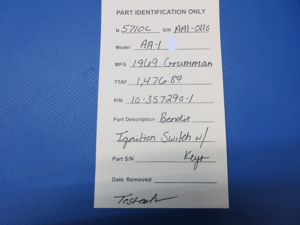 Grumman AA1 Bendix Ignition Switch with Keys P/N 103572901 TESTED (07251272)