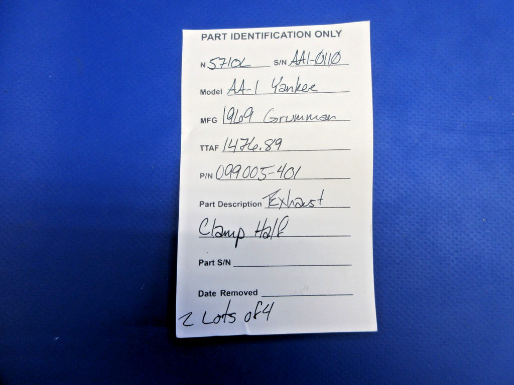 Grumman AA-1 Exhaust Clamp Half. P/N 099005-401. LOT OF 4. Due to multiple quantities buyer may not receive exact item pictured.