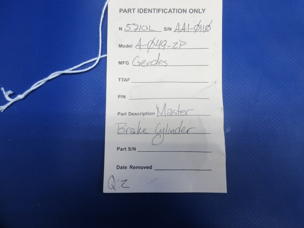 Grumman AA-1 Gerdes A-049-4P Master Brake Cylinder. Due to multiple quantities buyer may not receive exact item pictured. Removed in good condition from a parted out 1969 Grumman AA-1 N5710L, S/N AA1-0110. TTAF 1,476.89. Guaranteed to pass inspection or your money back.